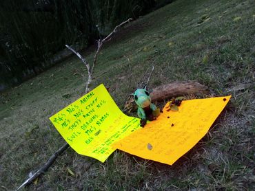 You got one picked out yet. kw,ku, our k-state. That would be alot juggle in. You goin ta do a flash, our keep em all. Up in the air, like ah trick. kw be bess bet. Yeah still refurbish in the mission. For the troupe Juggleduck, try twelve balls. Don't know how you can see. With them glasses behind that duck head. That's no talking heads. Our speaking in tounges. Little creature he is not. Hasn't got his head shrunken yet. That right there my friends. Is a walk in,talk in,fun love in,Orkanduck. Thad production, we all put in on. Would be a touch of perfection with. Wad you think my duck bud'z.