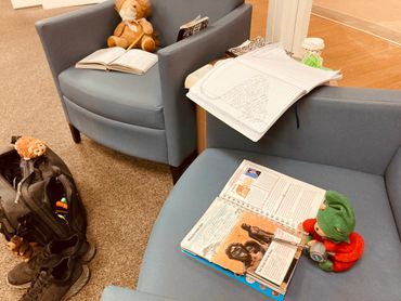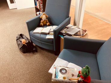 I think we are all over looking something here. There's a talking duck. On what you call. That Archie Bunker chair over there. Those are not duck feet. Those appear to be slippers. On his feet... duck feet. Those feet also appear. To be the sme feet. Kristie had as a child. Slippers Sully Slipper feet. Dizzy gives the best hugs. Yeah get a warm vibe. That vibrates from head to toe. Don't be scared Joe hug 😍😂💁em. Kristie goes
