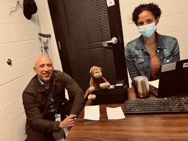 I think we are all over looking something here. There's a talking duck. On what you call. That Archie Bunker chair over there. Those are not duck feet. Those appear to be slippers. On his feet... duck feet. Those feet also appear. To be the sme feet. Kristie had as a child. Slippers Sully Slipper feet. Dizzy gives the best hugs. Yeah get a warm vibe. That vibrates from head to toe. Don't be scared Joe hug 😍😂💁em. Kristie goes