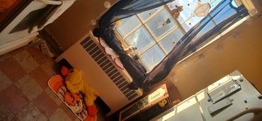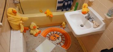 I think we are all over looking something here. There's a talking duck. On what you call. That Archie Bunker chair over there. Those are not duck feet. Those appear to be slippers. On his feet... duck feet. Those feet also appear. To be the sme feet. Kristie had as a child. Slippers Sully Slipper feet. Dizzy gives the best hugs. Yeah get a warm vibe. That vibrates from head to toe. Don't be scared Joe hug 😍😂💁em. Kristie goes