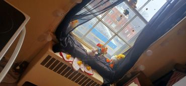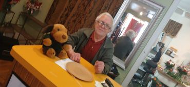 I think we are all over looking something here. There's a talking duck. On what you call. That Archie Bunker chair over there. Those are not duck feet. Those appear to be slippers. On his feet... duck feet. Those feet also appear. To be the sme feet. Kristie had as a child. Slippers Sully Slipper feet. Dizzy gives the best hugs. Yeah get a warm vibe. That vibrates from head to toe. Don't be scared Joe hug 😍😂💁em. Kristie goes